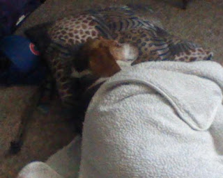 Charlie came home with her leg in a cast for the next 6 weeks. Her sad brown eyes were the most pitiful thing I had ever seen and she milked the sympathy vote like a pro with her sore foot. But, after 6 weeks and a nasty infection, we were able to remove the cast and start talking about taking the pins out. Then, Charlie changed the ballgame again. She jumped off my bed and bent all four of the pins in her toes. Sighhhhhhhhhhhhhhhhhhhhh...off to the vet we go. Dr. Twardowski sedated Charlie and straightened her toes, recasting her leg. Another few weeks of a gimpy beagle were in store.